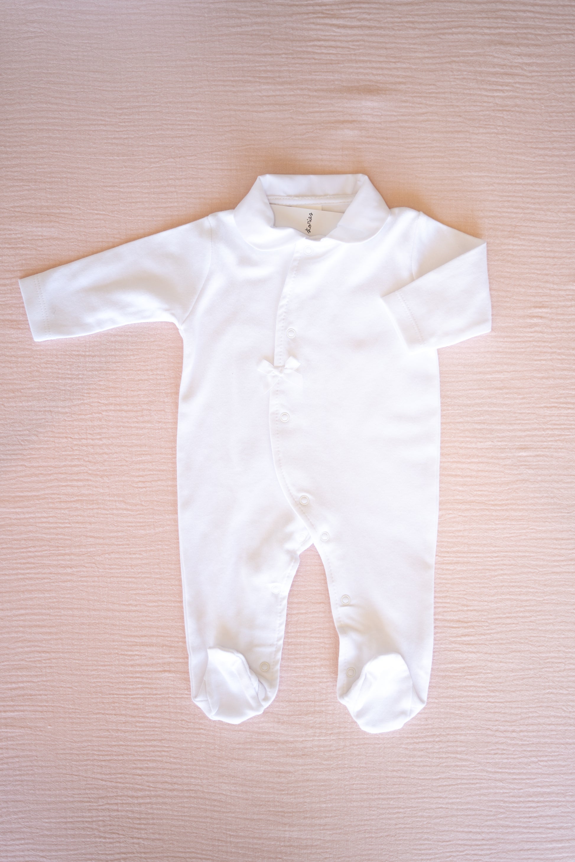 Este babygrow pode ser personalizado com o nome ou as iniciais do bebé, com bordado feito à mão, tornando-o único.